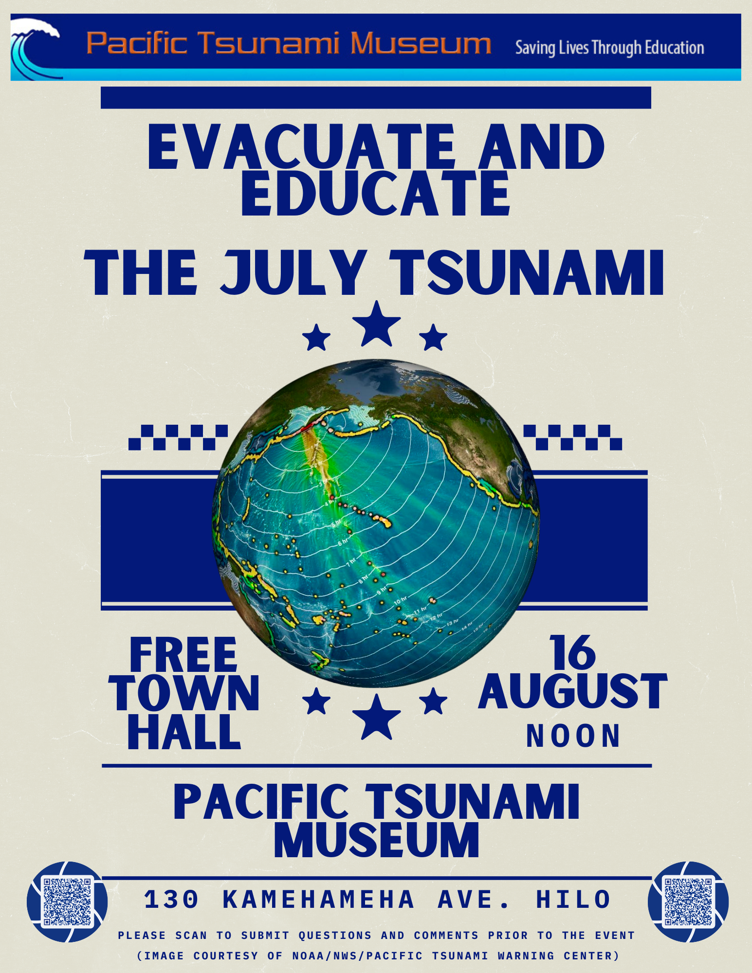 The Pacific Tsunami Museum (PTM) has announced a free town hall event titled “Evacuate and Educate: The July Tsunami,” scheduled for August 16. The event aims to provide the public with insights into how scientists observed and analyzed data as the earthquake’s energy traveled through the ocean.