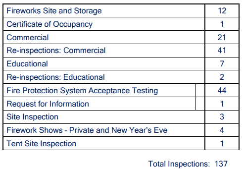 • The Fire Prevention Bureau conducted one (1) Public Education Presentation and reviewed 37 Plans.